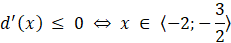 Funkcja d jest rosnąca na przedziale