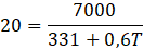 W tym zadaniu musisz obliczyć temperaturę powietrza, jeśli piorun uderzył 7 km od obserwatora, a dźwięk dotarł do niego po 20 sekundach, korzystając ze wzoru
