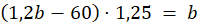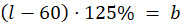Jeśli l to suma posiadana aktualnie przez Lolka, to wcześniej Lolek miał (l – 60) złotych (o 60 zł mniej). Kwota ta była o 25% mniejsza niż ta posiadana przez Bolka, czyli