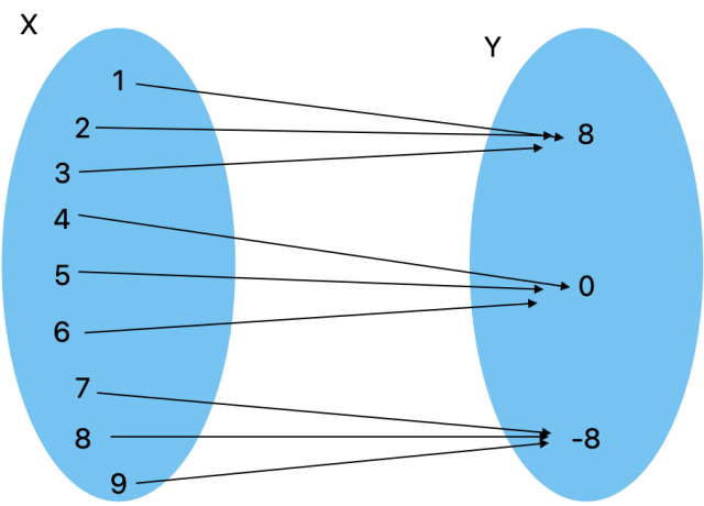 Utwórz taki graf, aby dla trzech argumentów funkcja przyjmuje wartość -8, dla innych trzech argumentów funkcja przyjmuje wartość 8, a dla jeszcze innych trzech argumentów funkcja przyjmuje wartość 0.