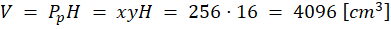 Zauważ, że skoro ściany są podobne, to stosunek ich dłuższych boków do krótszych jest jednakowy. Wyznacz z niego pole powierzchni podstawy (xy), a następnie przemnóż ją przez wysokość (H = 16).
