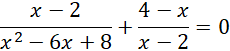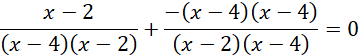 W pierwszej kolejności wyznaczymy dziedzinę naszego równania, w tym celu pomocniczo rozbijemy trójmian kwadratowy w mianowniku na iloczyn nawiasów. Następnie sprowadzamy wyrażanie na wspólną kreskę ułamkową i stosujemy regułę, że aby ułamek równał się 0 to licznik musi być równy 0, stąd otrzymujemy dwa rozwiązania oraz szukaną sumę.