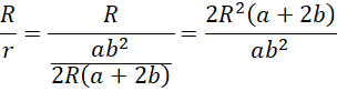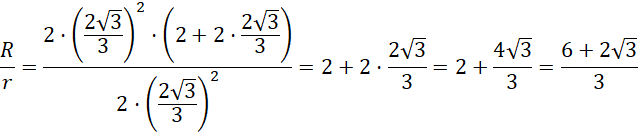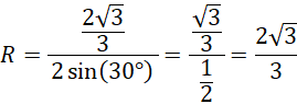 Wyznacz stosunek długości promieni okręgów opisanego i wpisanego w trójkąt równoramiennego, którego podstawa ma długość 2 dm, a kąt przy podstawie wynosi 30°.