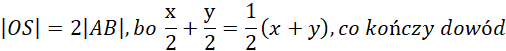Punkty A i B leżą kolejno na osi x i osi y. Potwierdź, że odległość środka odcinka AB od początku układu współrzędnych jest dwa razy krótsza niż długość tego odcinka.