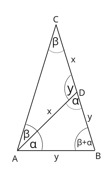 Skorzystaj z trójkątów ADC i ABD i znajdź zależność między kątami alfa i beta.