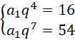 Określ iloraz ciągu, wiedząc, iż jego piąty wyraz jest równy 16, a ósmy 54: