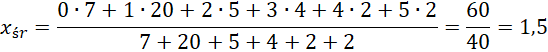 Podaj średnią arytmetyczną otrzymanych danych, posługując się tabelką oraz wiedząc, iż sondaż przeprowadzono w grupie 40 uczniów.