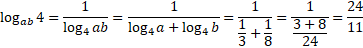 W tym zadaniu należy obliczyć wartość logarytmu o podstawie ab z 4 w oparciu o dane z zadania: