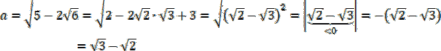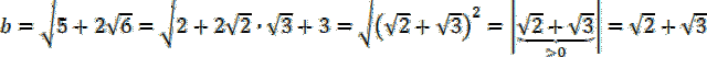 przedstaw w najprostszej postaci. Aby to zrobić liczbę 5 pod każdym pierwiastkiem rozbij na sumę liczb 2 i 3. Pod pierwszym pierwiastkiem zauważ wzór skróconego mnożenia na kwadrat różnicy: