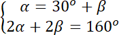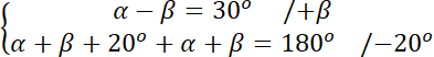 . Następnie skorzystaj z własności podanej w treści zadania i tego, że suma miar kątów w trójkącie wynosi