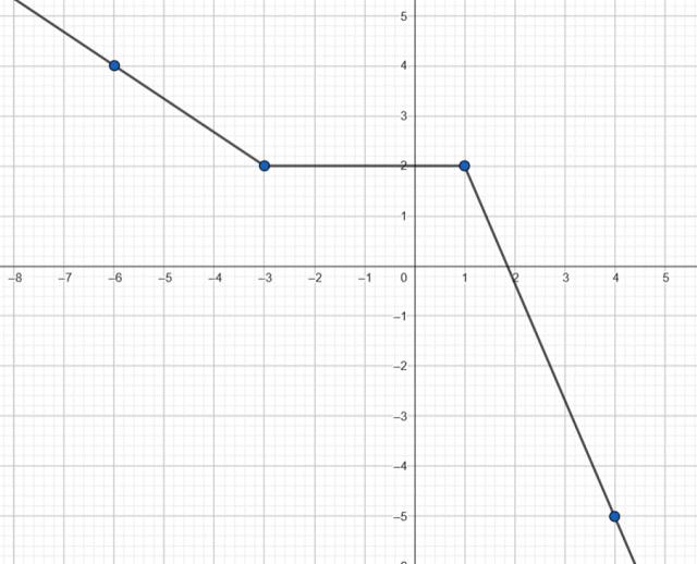 określona na zbiorze liczb rzeczywistych jest funkcją nierosnącą, a punkty: