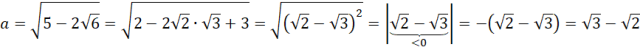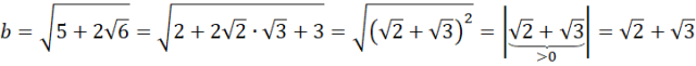 przedstaw w najprostszej postaci. Aby to zrobić liczbę 5 pod każdym pierwiastkiem rozbij na sumę liczb 2 i 3. Pod pierwszym pierwiastkiem zauważ wzór skróconego mnożenia na kwadrat różnicy: