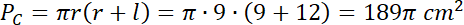 Na koniec skorzystaj z tego, że pole całkowite stożka można obliczyć ze wzoru