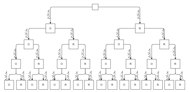 Wyznacz wartość oczekiwaną liczby wyrzuconych rzutów, jeśli rzucamy monetą tak długo, aż otrzymamy cztery orły z rzędu lub pierwszą reszkę.