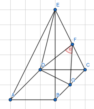 - wysokość ściany bocznej opuszczona na krawędź podstawy długości 4 – wysokość ściany bocznej opuszczona na krawędź boczną o podstawie długości 4 – przekątna połowy podstawy