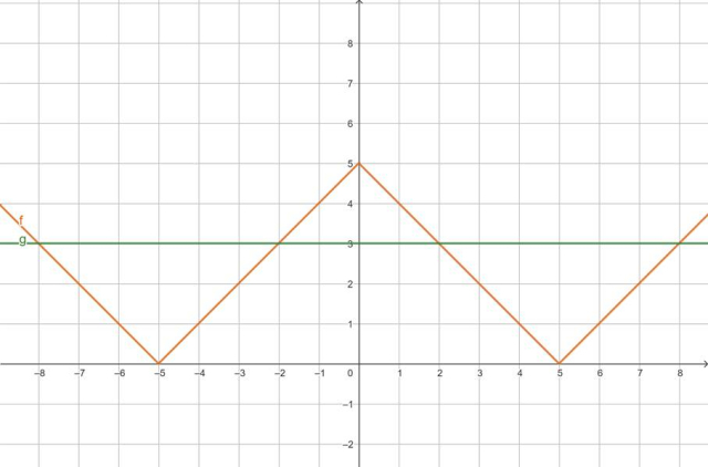 Wyznacz x dla których zielona funkcja jest nad pomarańczową.