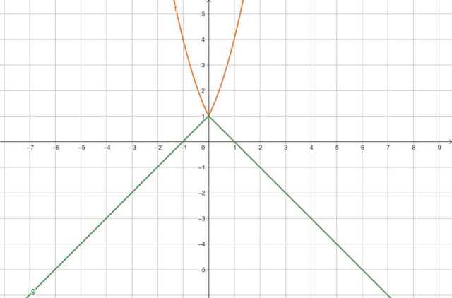 Wyznacz x dla których zielona funkcja jest na lub nad pomarańczową.