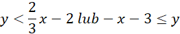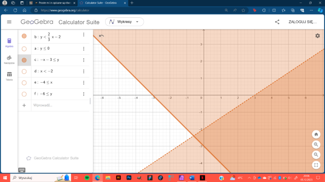 Zapisz nierówność, która opisuje zbiór punktów zaznaczone przez podane proste.