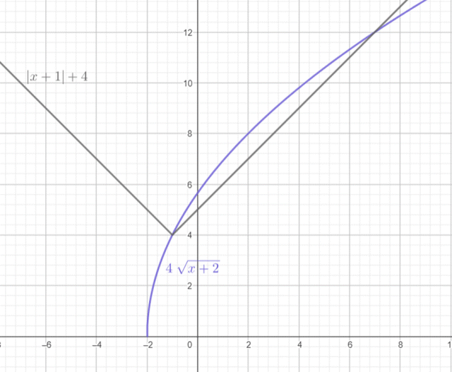Wyznacz x dla których fioletowa funkcja jest na lub nad szarą.
