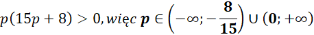 Wyznacz takie wartości p, dla których dana prosta i okrąg mają dwa punkty wspólne.