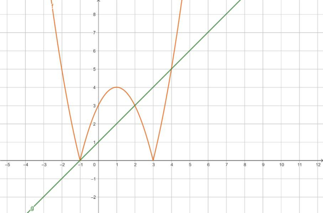 Wyznacz x dla których pomarańczowa funkcja jest nad zieloną.