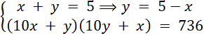 Suma cyfr pewnej liczby dwucyfrowej jest równa 5. Jeśli tę liczbę pomnożymy przez liczbę dwucyfrową o takich samych cyfrach, ale zapisanych w odwrotnej kolejności, to otrzymamy 736. W tym zadaniu musisz wyznaczyćtę liczbę.