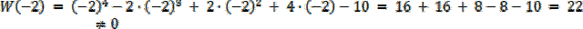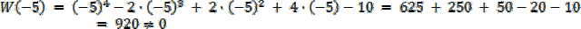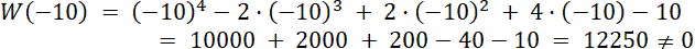 . Następnie podstawiając kolejne liczby, szukaj która jest pierwiastkiem danego wielomianu. Zauważ, że żadna z tych nie jest pierwiastkiem, a więc ten wielomian nie ma pierwiastków wymiernych.