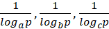 Udowodnij, że gdy liczby dodatnie a, b, c, które są różne od 1, tworzą ciąg geometryczny, to liczby , zakładając, że p to dowolna liczba dodatnia różna od 1, tworzą ciąg arytmetyczny.