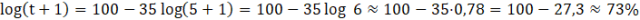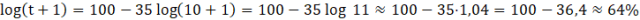 , gdzie M-procent pamiętanych wiadomości, a t to liczba dni, które upłynęły od nauczenia się wiadomości, odpowiednie liczby.