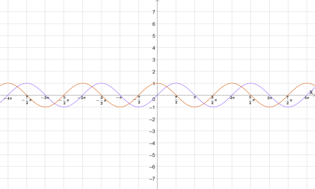 Narysuj wykresy funkcji sin x oraz cos x. Skorzystaj z wykresów funkcji do określenia miejsc przecięcia. Określ rozwiązanie i sformułuj odpowiedź.