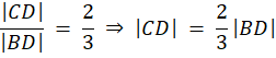 Z podanego stosunku podziału przeciwprostokątnej wyznacz długości tych odcinków. Następnie skorzystaj z własności trójkąta prostokątnego