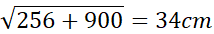 W tym zadaniu musisz obliczyć pole powierzchni całkowitej graniastosłupa, którego podstawa to trójkąt prostokątny, którego przyprostokątne 16 cm i 30 cm, a wysokość bryły to 150% najdłuższej krawędzi podstawy.