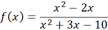 Dziedzinę określamy z warunku, że mianownik wyrażenia musi być różny od zera, otrzymujemy równanie kwadratowe, które daje nam rozwiązania – te rozwiązania nie będą należały do dziedziny.