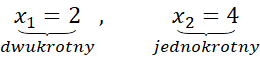 Przenieś wszystkie wartości na jedną stronę równania i przedstaw je w najprostszej postaci. Skorzystaj z tego, że powstałe równanie jest zerem, gdy któryś z nawiasów wyzeruje się i na tej podstawie wyznacz rozwiązanie każdego z równań w powstałych nawiasach. Na koniec wyznacz krotność każdego z nich.