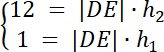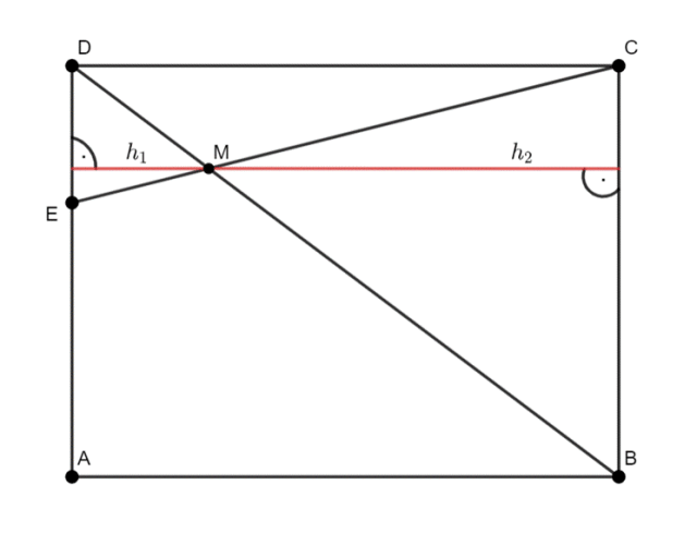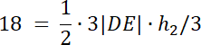 W tym zadaniu wyprowadź wysokość w trójkątach DEM i MBC, a następnie zauważ, że suma tych wysokości to wysokość trójkąta BCD. Wyznacz zależność dla h1 i h2 od boku |DE|, a następnie policz pole trójkąta DBC.