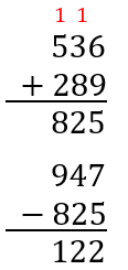 W pierwszej kolejności dodaj do liczby głosów oddanej na przewodniczącego, liczbę głosów uzyskanych przez jego zastępcę. Następnie od łącznej ilość głosów odejmij uzyskany wynik. Możesz zapisać te działania w jednym równaniu: 947 – (536 + 289) = 122.