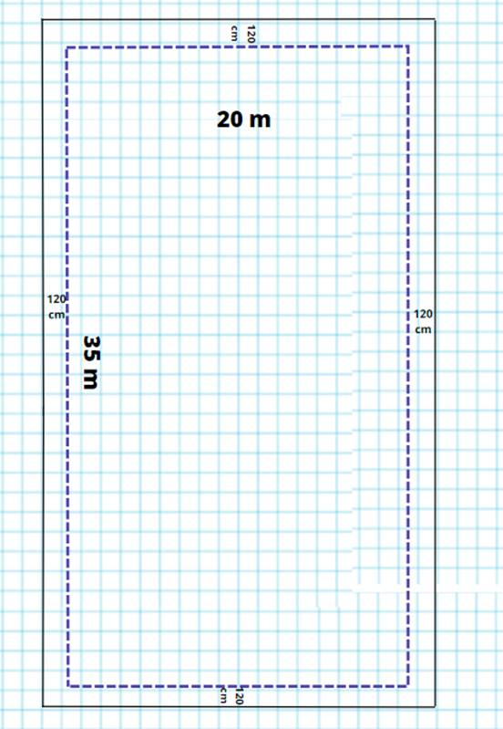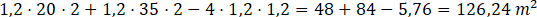 Chodnik układamy wewnątrz placu, więc musimy odjąć potem 4 kwadraty w narożnikach, które przy sumowaniu bocznych prostokątów sumujemy dwukrotnie.