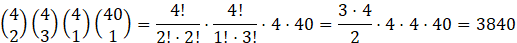 Istnieje 3840 sposobów, aby wyciągnąć siedem kart i żeby były to dwie damy, trzy walety, jeden as i jedna dowolna karta.