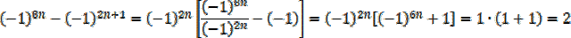 Obie potęgi będą parzyste, gdyż nie ważne, jaką liczbą jest n (parzystą czy nieparzystą) 2n oraz 6n są parzyste, więc wartość potęgi będzie wynosić 1. Dla dowolnego n: