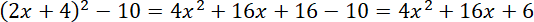 Musisz liczbę (2x + 4) podnieść do kwadratu, a następnie odjąć od niej 10.