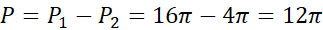 Następnie oblicz pole pierścienia, odejmując od pola koła o promieniu 4 pole koła o promieniu 1.