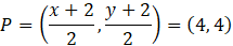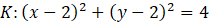 Podaj równanie okręgu, który jest symetryczny względem punktu P(4, 4) do okręgu o środku S(2, 2) i promieniu równym 2.
