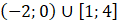 Odczytujemy dla jakich argumentów wykres znajduje się pomiędzy wartościami -2 i 0 (nawiasy otwarte) oraz pomiędzy wartościami 1 i 4 (nawiasy domknięte):