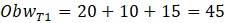 Wiemy, że obwód T2 = 18, możemy obliczyć obwód T1:
