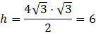 Po poprowadzeniu wysokości otrzymaliśmy trójkąt o miarach kątów 30˚, 60˚, 90˚. Ta wysokość jest dłuższą przyprostokątną, a przeciwprostokątną jest ramię trójkąta. Podstawa składa się z krótszej oraz dłuższej przyprostokątnej trójkąta o miarach kątów 30˚, 60˚, 90˚.