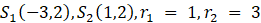Podane równania okręgów należy przekształcić do postaci kanonicznej następująco:
