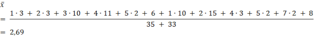 Przeprowadzona została ankieta, a pytanie „Ile filmów oglądasz miesięcznie w kinie?” odpowiedzieli uczniowie dwóch klas liceum. Określ średnią arytmetyczną, dominantę i medianę oglądanych filmów obu klas.