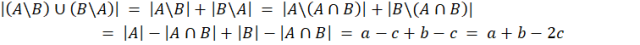 Zbiory A\B i B\A są rozłączne, a więc ich suma ma tyle elementów, ile suma elementów poszczególnych zbiorów. Następnie możesz zapisać