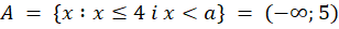 Zbiór A nie może być równy podanemu przedziałowi, bo np. 4,5 należy do przedziału, ale ze względu na warunek