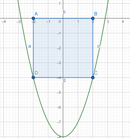 W celu rozwiązania zadania można przedstawić daną sytuację, rysując parabolę w układzie współrzędnych i zaznaczając odpowiednie wierzchołki kwadratu.